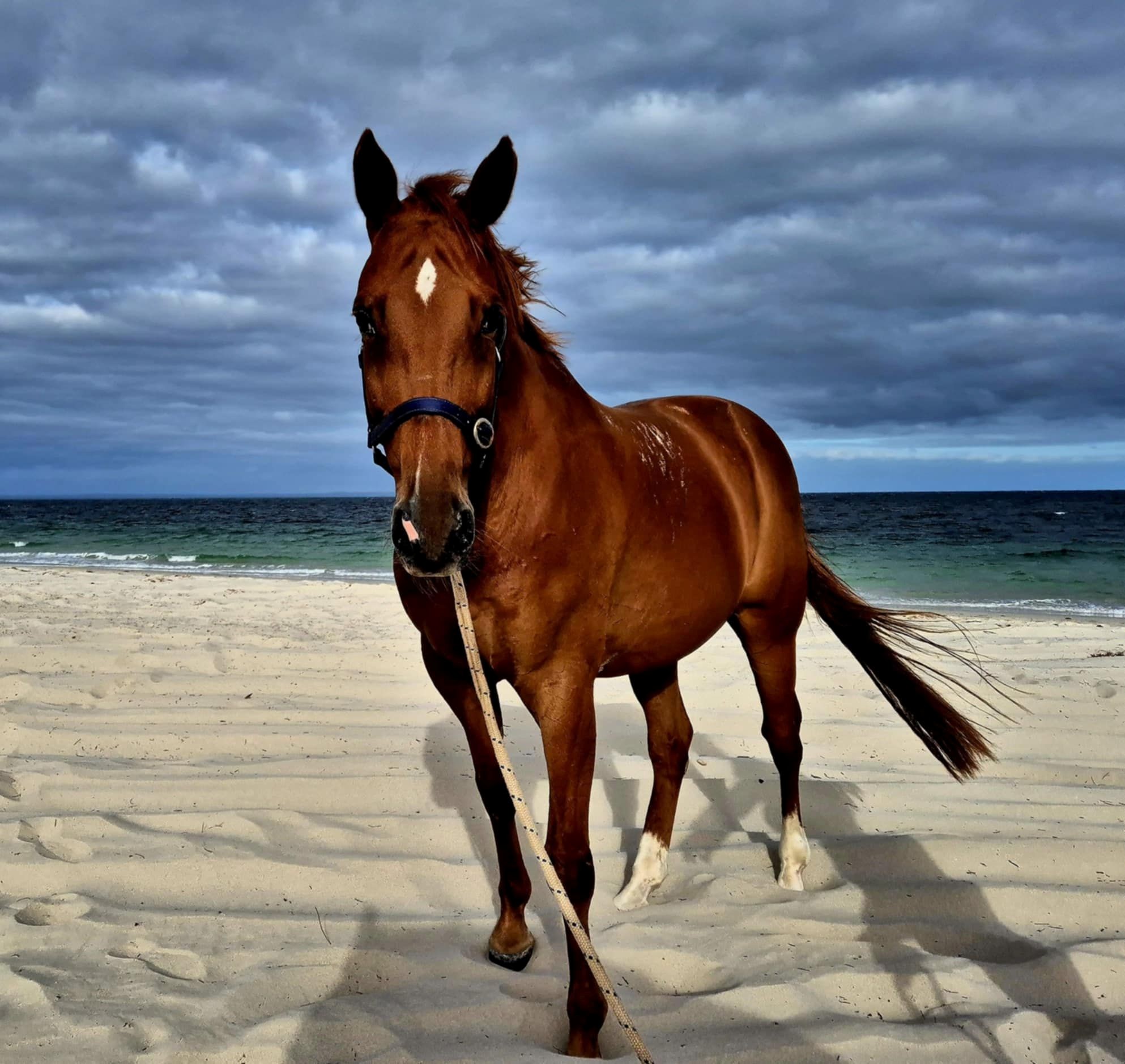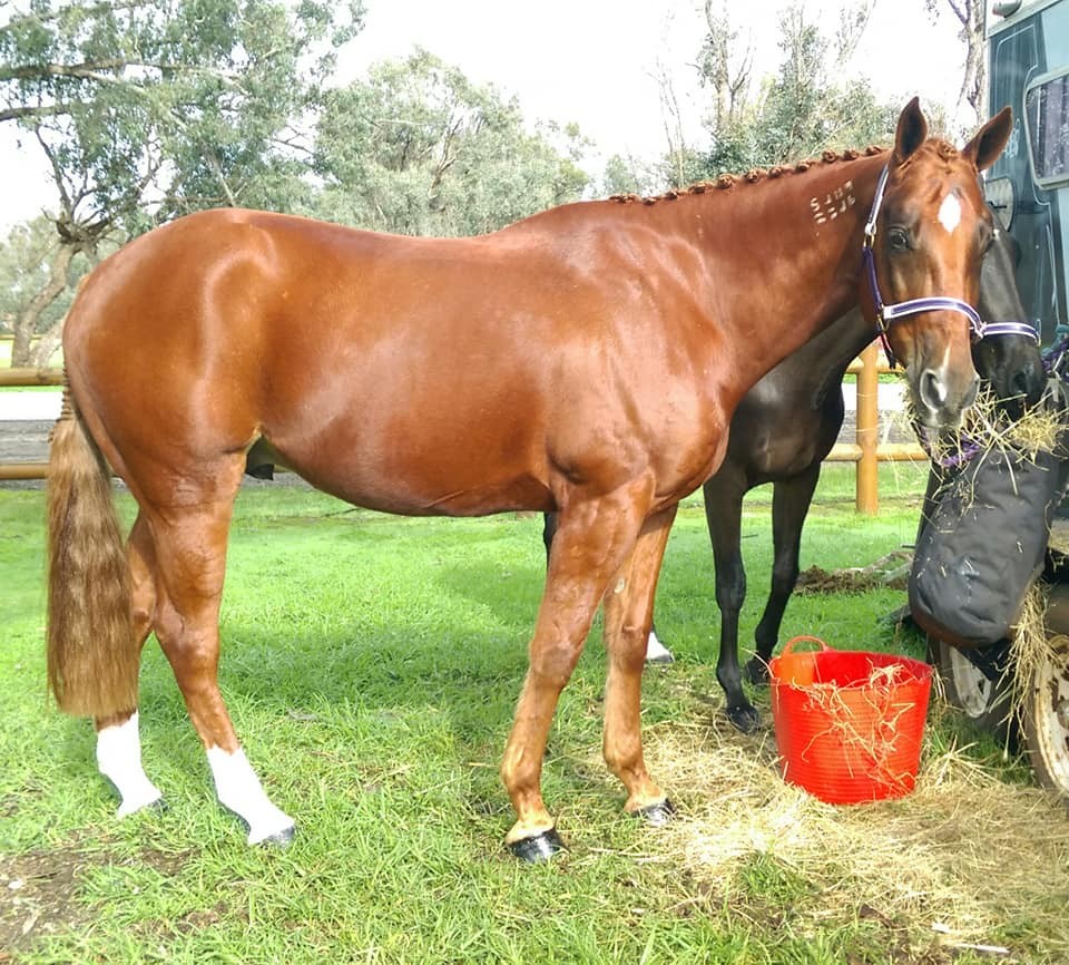 Rehomed to Naomi Mead, Eric settled into an off-the-track lifestyle. Standing out with his chestnut coat and white markings, Eric has been well placed throughout his new showing career in Standardbred classes.