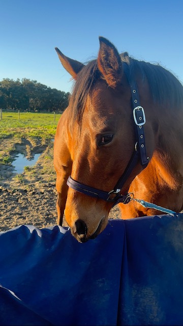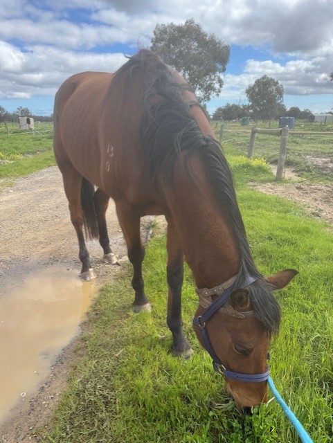 Buddy has undergone a comprehensive veterinary assessment, including scoping, and shows no signs of ulcers or kissing spine. He is a windsucker, which is well managed with a magic collar. Buddy has a historical tendon injury, which was treated successfully at The Animal Hospital (Murdoch) when still in training for racing. There are no other injuries or illnesses of note that I am aware of.