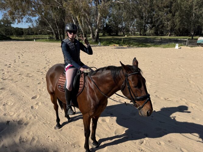 Keira has set her sights on attending more jumping clinics and tackling another dressage event in the future. Currently, she is focused on establishing his canter and balance and most importantly, having fun!