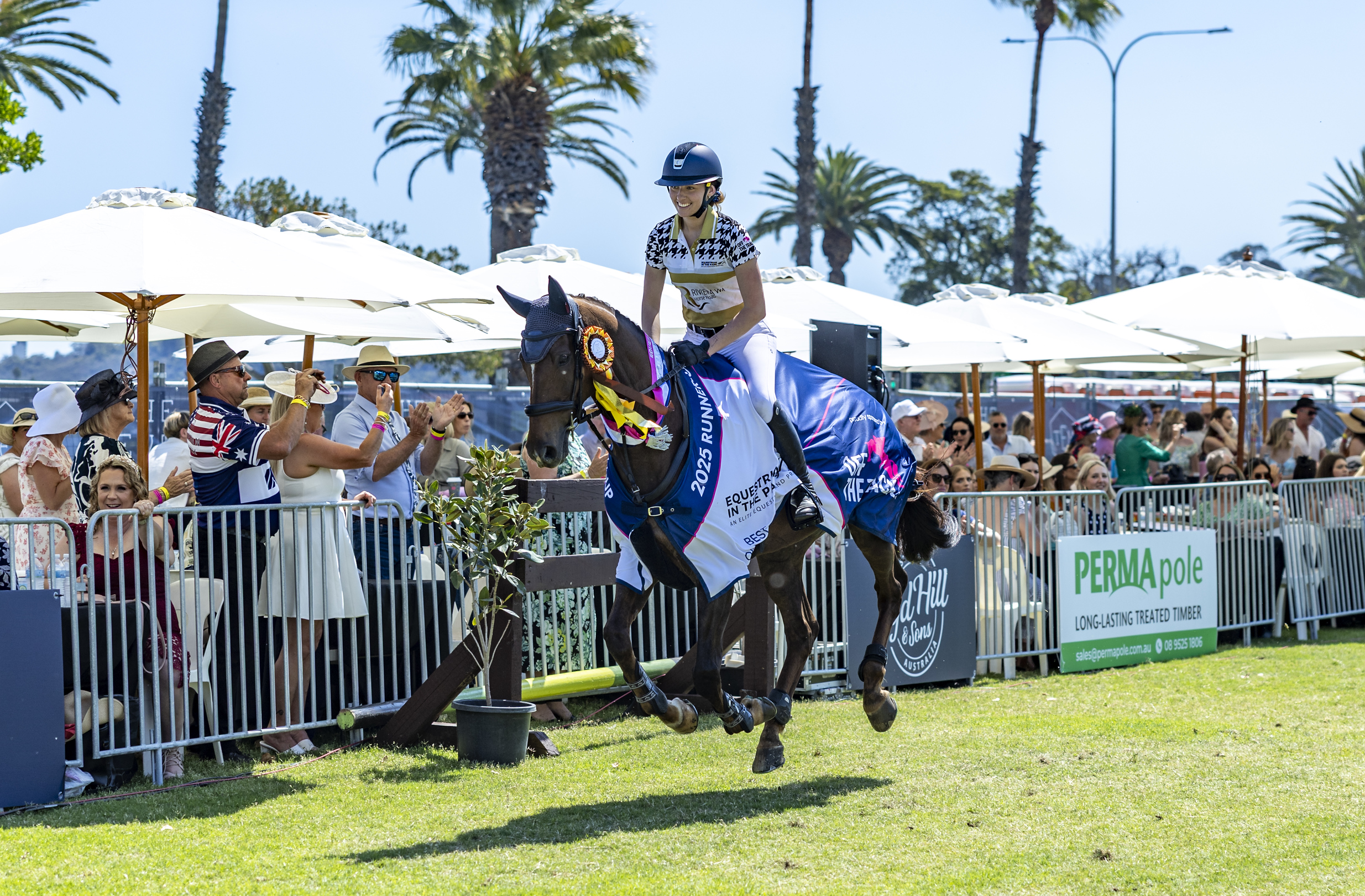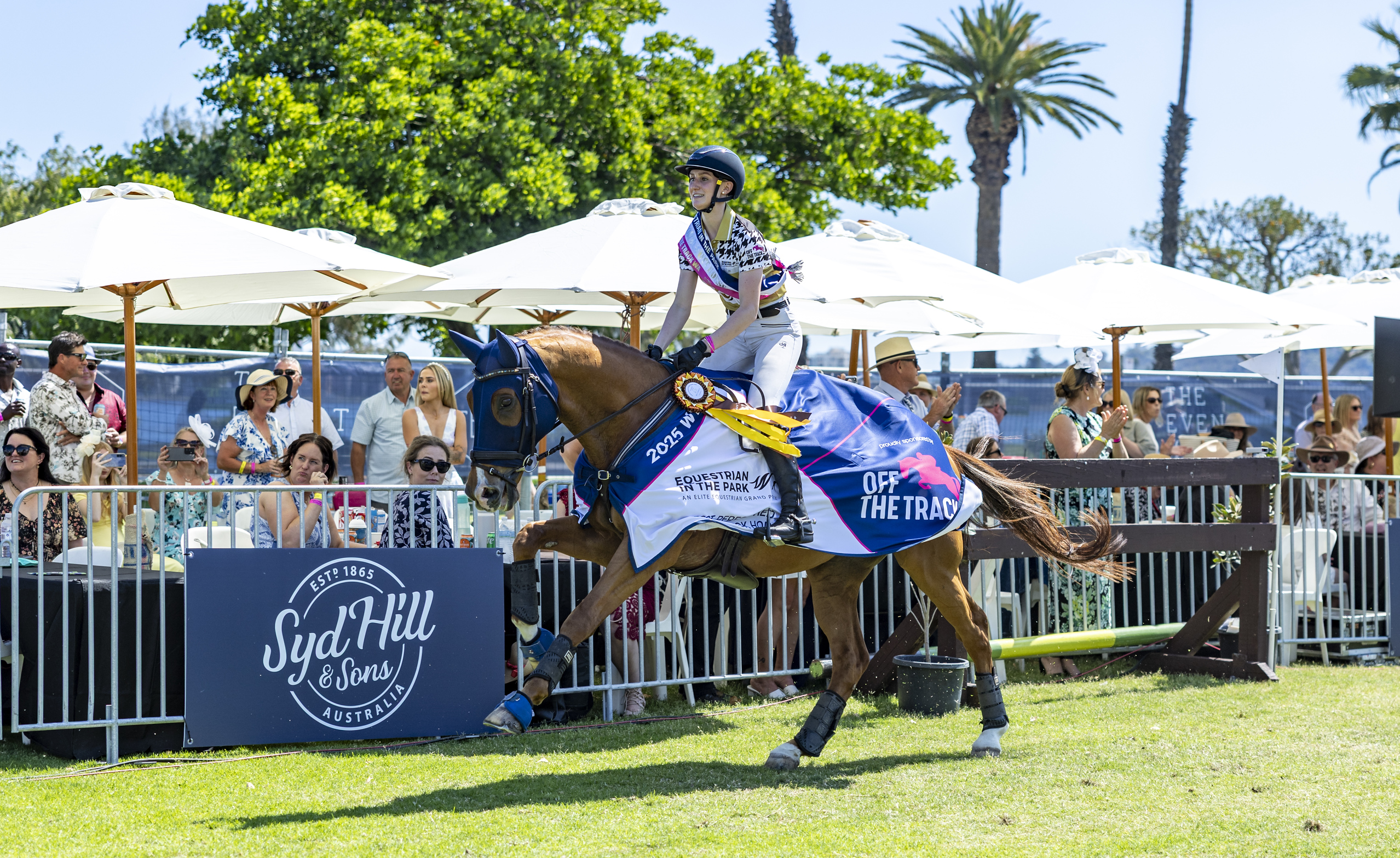 Tegan Cook, an OTTWA Retrainer and producer of quality horses, wowed everyone with a perfect first round, followed by a faultless jump-off. Onboard her retired racehorse, Lyrical Discourse (Moet), Tegan claimed her third Equestrian in the Park win!
