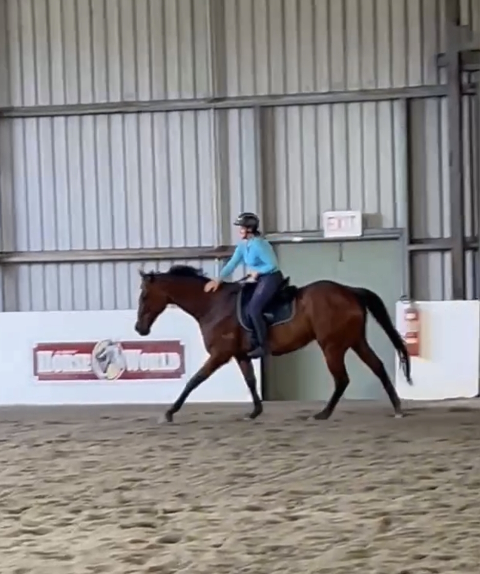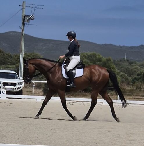 Yvette Borthwick was instantly interested when she came across an advertisement featuring Main Instigator posing with his tongue out. Purchasing the gelding from his trainer, Yvette was ready to begin the retraining process with ‘Scooter’.