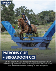 Off the Track WA were thrilled in October to sponsor another Patrons Cup weekend of show jumping followed by EWAP’S Brigadoon CCI event. Each event saw retired racehorses excelling in their disciplines. WASJA Patrons Cup weekend hosted 79 retired racehorses competing across three days of competition. Off the Track WA sponsored four OTT exclusive classes, […]