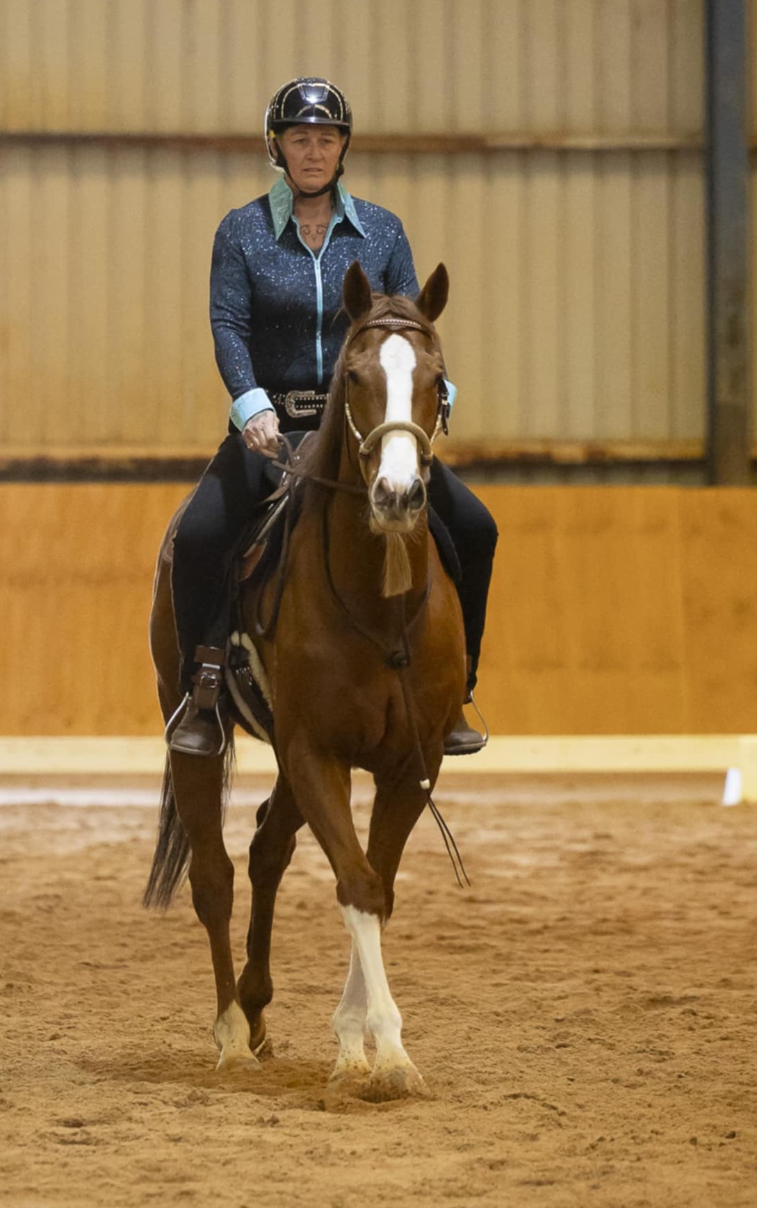 Karen looks forward to working with Rocky further into their Western Dressage journey and looks to move up the grades and teach him the higher-level movements. She also looks forward to showing him the local hills and trails and simply enjoying their time together.