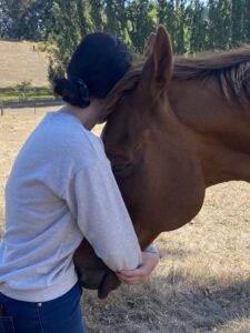 Living up to his name, Maverick has been ‘really true’ to his nature as a wonderful horse. After retiring from ridden work, Maverick lives his dream retirement in endless green paddocks, good company, swims in the dam and regular bodywork. He also still enjoys the occasional gentle trail ride. He plays an integral part in Nikita’s sisters business as a therapy horse for Pineridge Farm, helping people heal and connect.