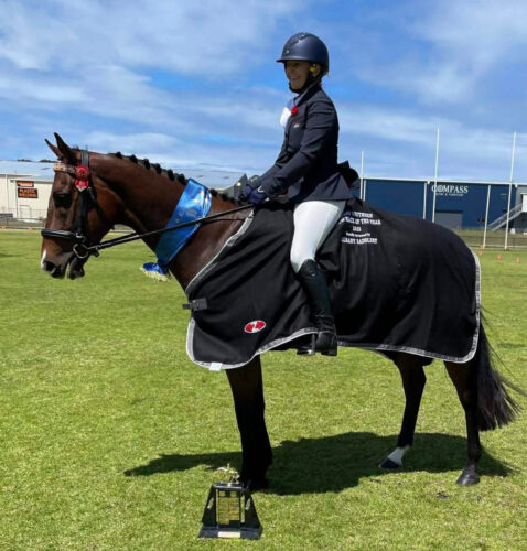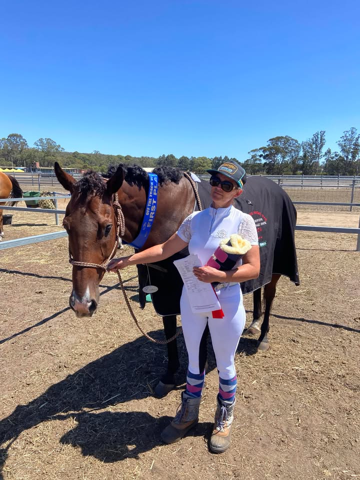 Teddy has achieved many successes since abandoning the racing lifestyle. Tracy fondly recalls several wins throughout their partnership, including Champion Show Horse at the 2024 Mount Barker Show, Champion Show Horse at the 2024 Albany Agricultural Show, Encouragement Horse of the Year at Albany’s Horseman and Official Horse of the Year at Albany Agricultural Show in 2025. They have also scored over 75% in their preliminary dressage tests and consistently score over 65% in their novice.