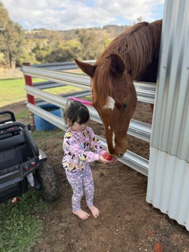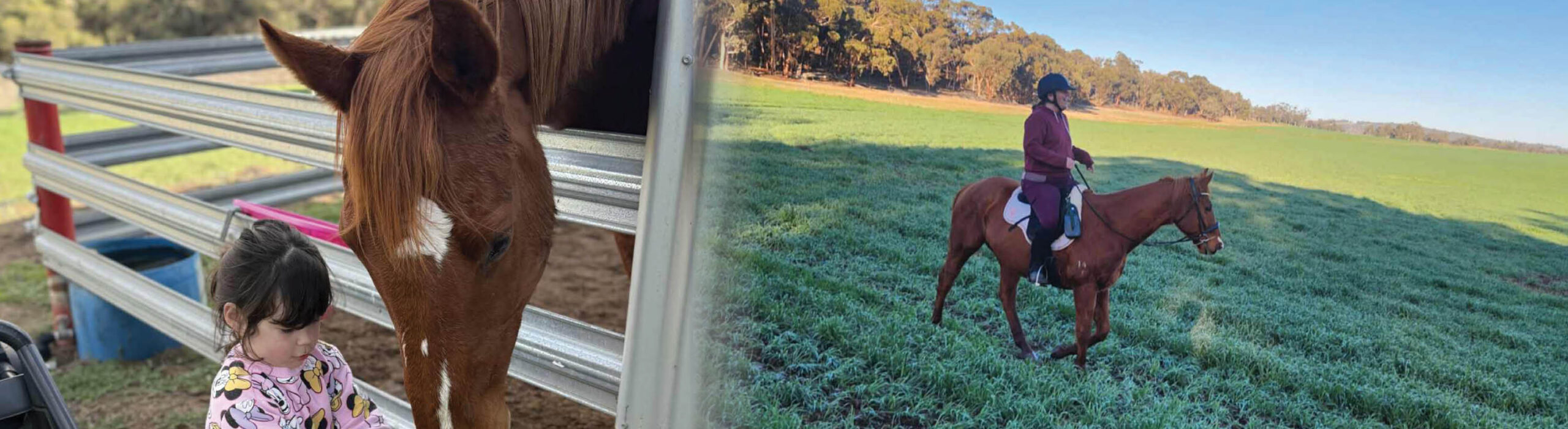“He can be sitting in the paddock for weeks and be pulled out for a quick lead down the driveway with my girls onboard and he is a lamb. He even walks slower for them and is very tolerant when they insist on practicing their trotting.”